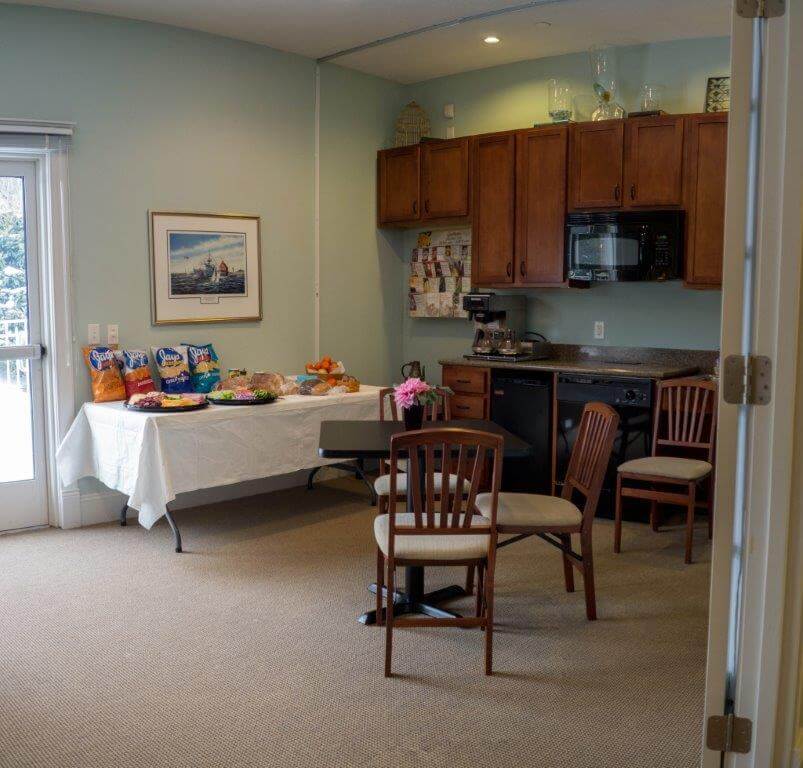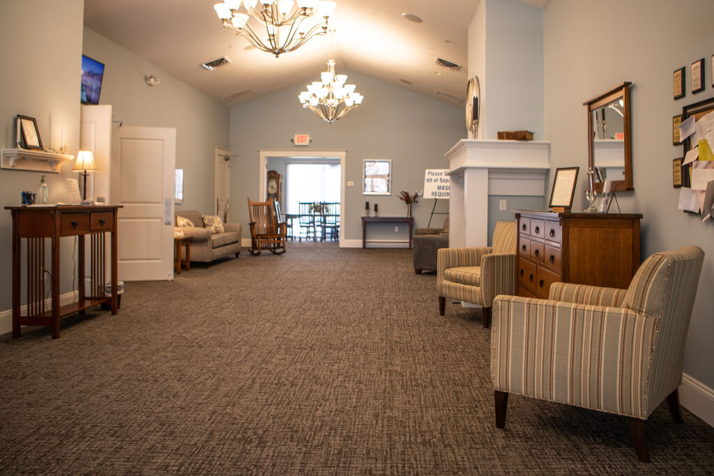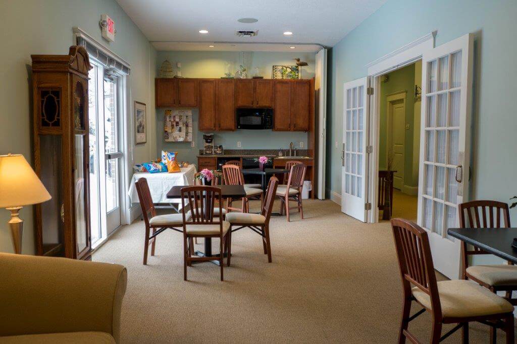 We provide ample well lit parking and beautifully maintained grounds. Our drive under canopy is convenient in inclement weather, just as our patio is comfortable in finer weather. We are very close to stores, gas, and restaurants.